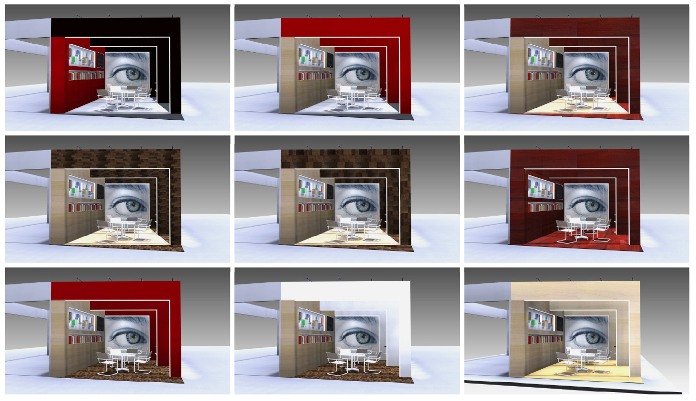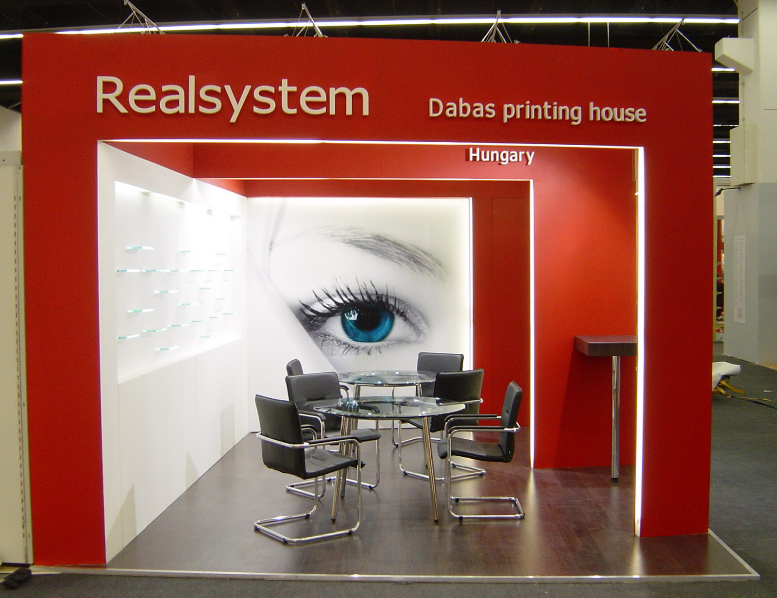 Dabasi nyomda kiállítási stand tervezés és építés – Frankfurt // Dabas printing house stand planning and consctruction Stand külső nézet Stand belső nézet Stand Stand belső nézet Falrészlet Látványterv varációk Tervezett alaprajz